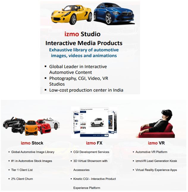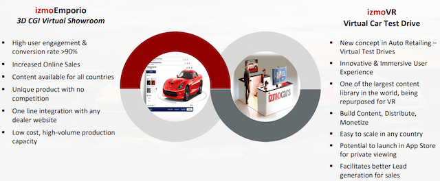 izmoEmporio (3D CGI Virtual Showroom) and izmoVR (Virtual Car Test Drive).